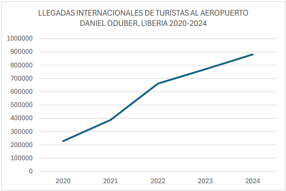 La llegada de visitantes a la provincia de Guanacaste vía el aeropuerto Daniel Oduber no ha dejado de aumentar desde la crisis sanitaria de 2020. Ya en el año 2022, con un ingreso de 660 mil turistas a través de ese aeropuerto, se superaron las cifras anteriores a la pandemia, de 600 mil visitantes en 2019. En el año 2024, la cifra alcanzó los 881 viajeros que ingresaron a través de dicho aeropuerto.
