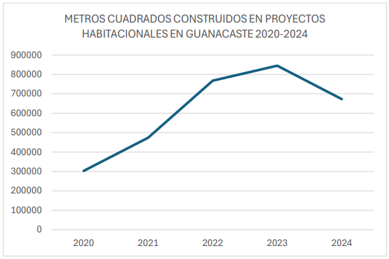 Figura 4. Cantidad de metros cuadrados construidos en Guanacaste en proyectos habitacionales 2020-2024. Fuente: elaboración propia a partir de datos del CFIA.